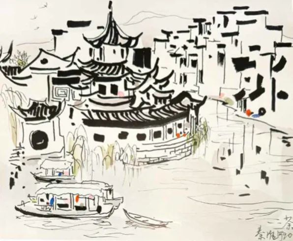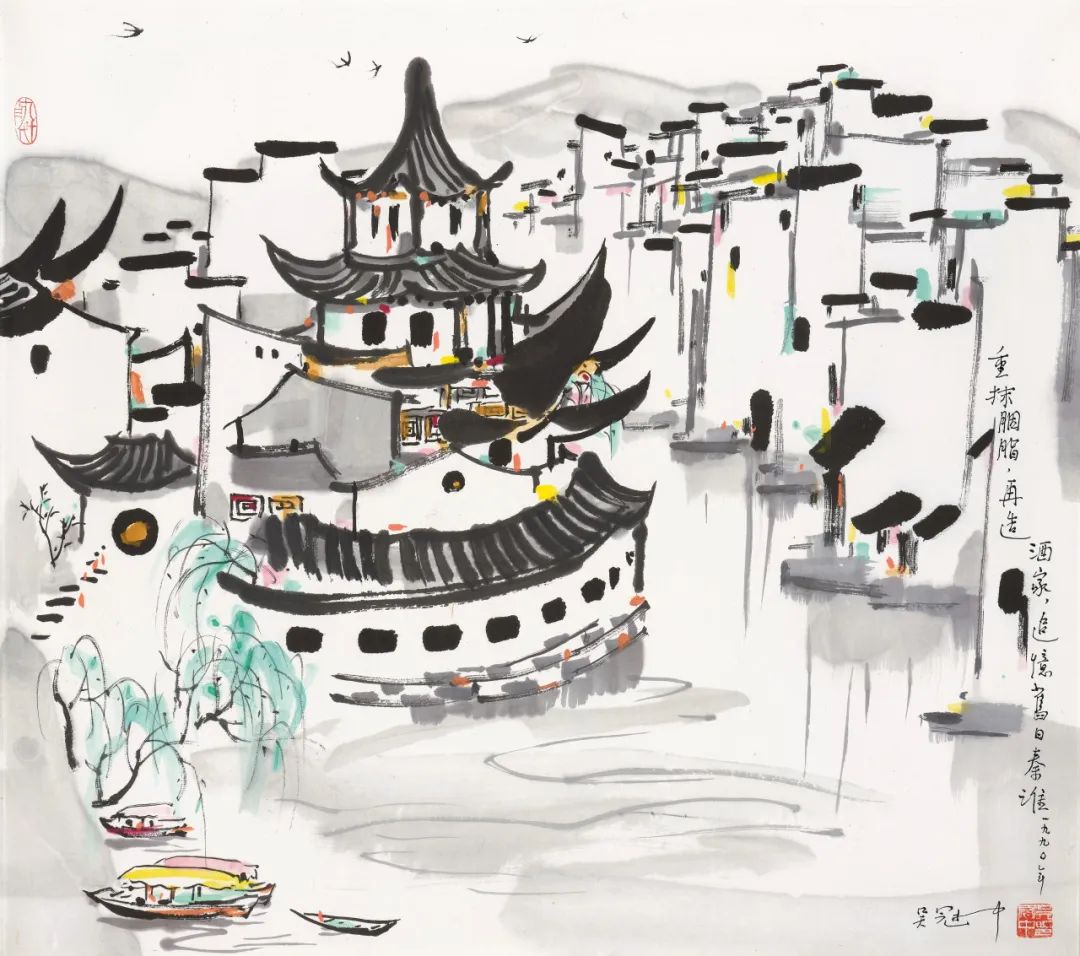 1991年《追忆秦淮河》参见《吴冠中全集》(七),(长沙)湖南美术出版社,2007年8月,页90
