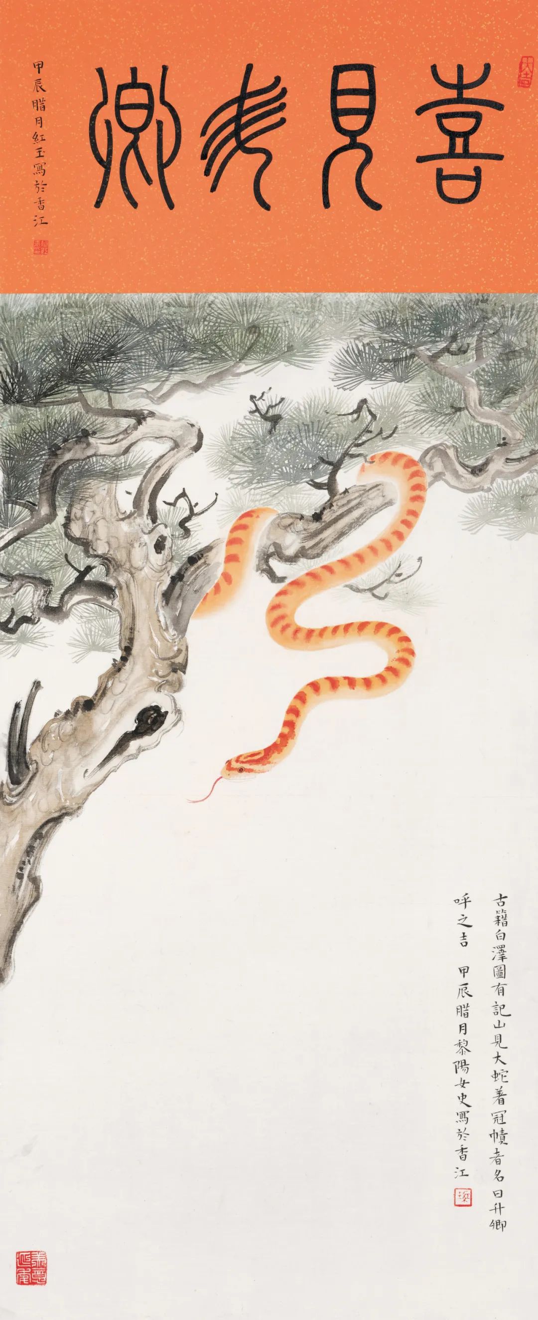 “昇卿”乃蛇之雅称,蕴含升腾、奋进、增上的美好寓意。甲辰除夕乙卯新年,灵隐寺方丈光泉法师题写“喜见昇卿”赠杭州市民新年祈福,一时全城皆现此吉语,吉祥无限。
