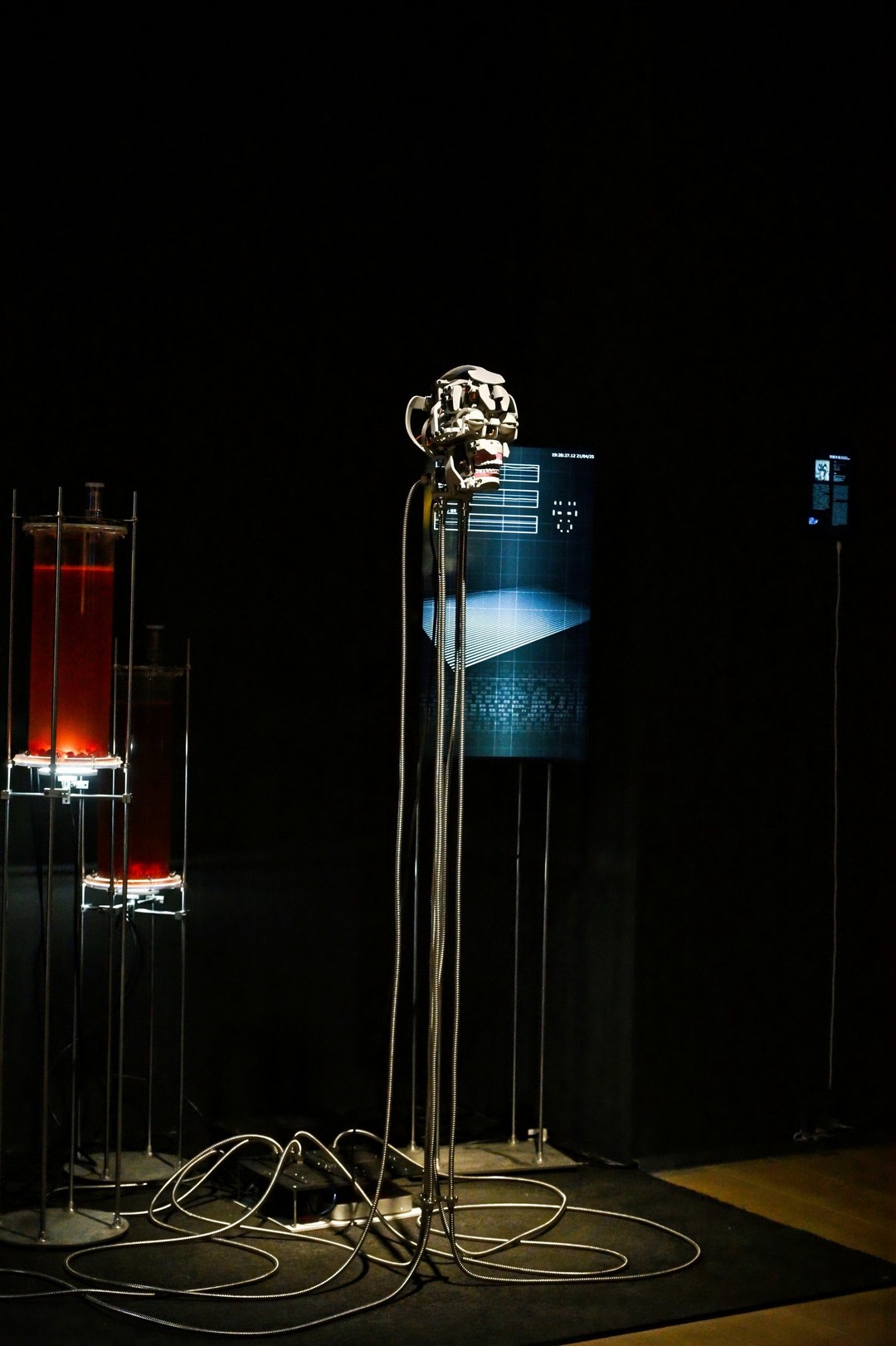 由张海涛策划的“媒介创造与本体穿越——机器人艺术中国”集结19位(组)中国艺术家25件作品参展,以中国的人形机器人艺术为研究方向,强化人形具身机器人研究领域与艺术的结合。当机器人的钢铁之躯以更类似人类的外壳接近人类,并以主人公的视角去自主地感知世界的时候,人类传统认知的本体论裂变出多种形态。具身智能高度参与的人类社会未来,需要构建新的社会规则和秩序,新的伦理道德标准。人类将如何着陆?展览为这些当下社会的热点话题做出艺术与技术混合的视觉和感知回应。
