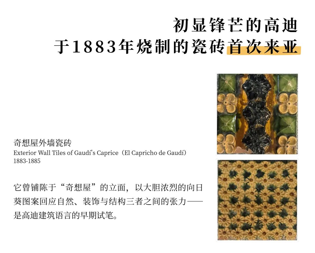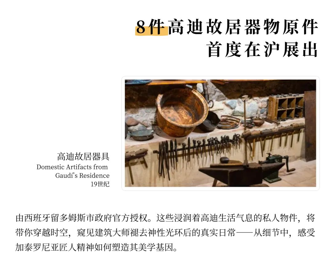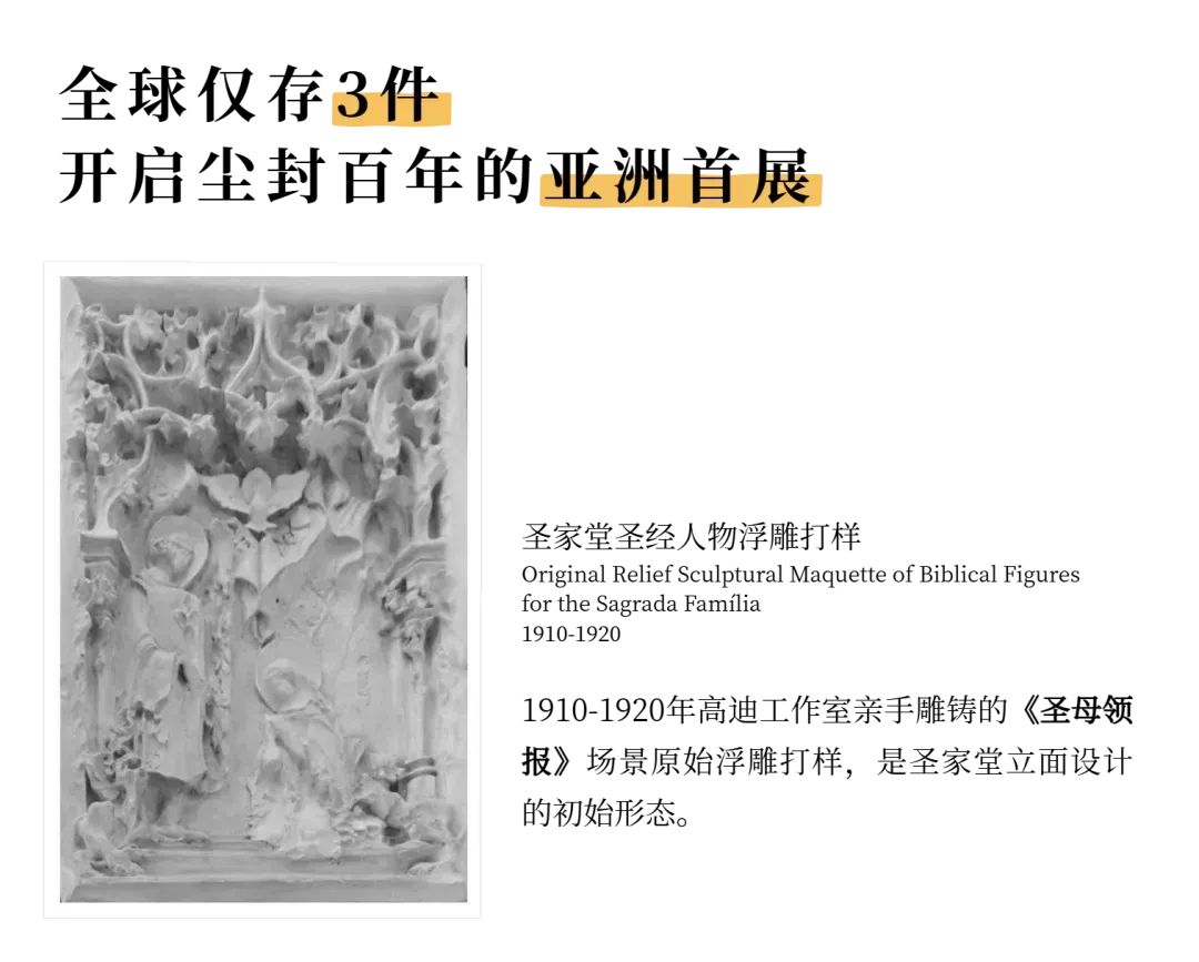 高迪双展之一的“绚烂归朴——高迪与他的时代”将展出5件首度来华的高迪知名建筑构件原件,11件加泰罗尼亚理工大学(UPC)研究院制作的建筑构件模型,以及230+件高迪及其协作者的研究稿及影像资料。展览将通过不同媒介,向观众全面系统地呈现高迪个人创作的演变历程及其在建筑艺术道路上的探索与突破,并深入探索艺术与城市、艺术与生活的构建边界,以及新艺术运动给社会生活带来的变革。