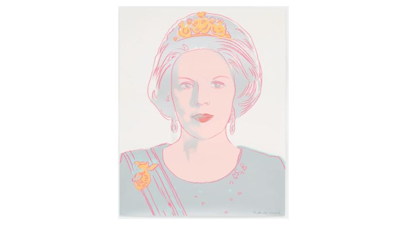 贝娅特丽克丝女王版画是沃霍尔「在位女王」系列作品的一部分,该系列作品由 16 幅彩色版画组成,描绘了四位君主,包括已故女王伊丽莎白二世、2023 年退位的丹麦女王玛格丽特二世和史瓦济兰女王恩通比·特瓦拉。
