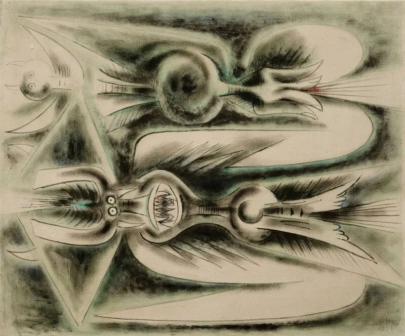 右下角签名:Wifredo Lam 并标注日期:1945