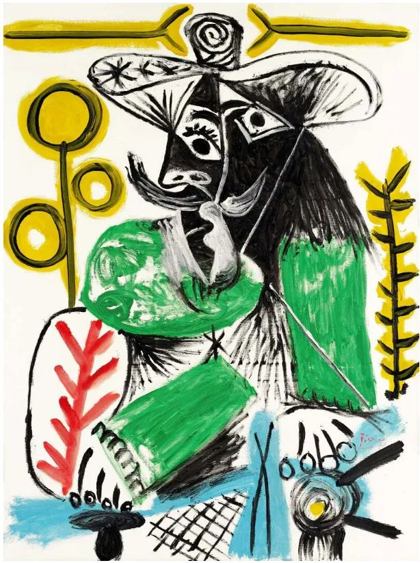 作品右下角签名:Picasso 画背标注日期:10.12.69.