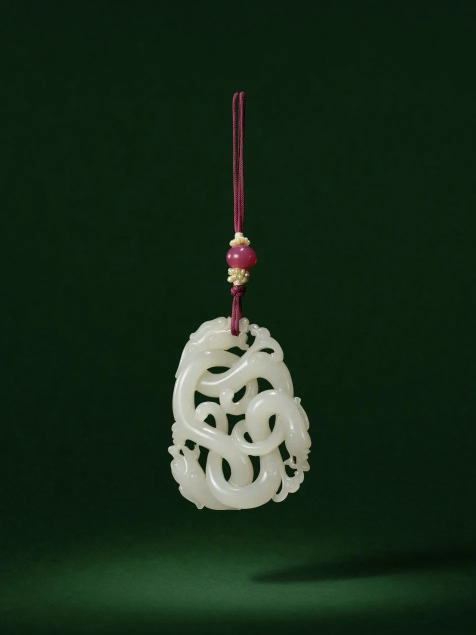 十八/十九世纪 白玉镂雕龙纹珮