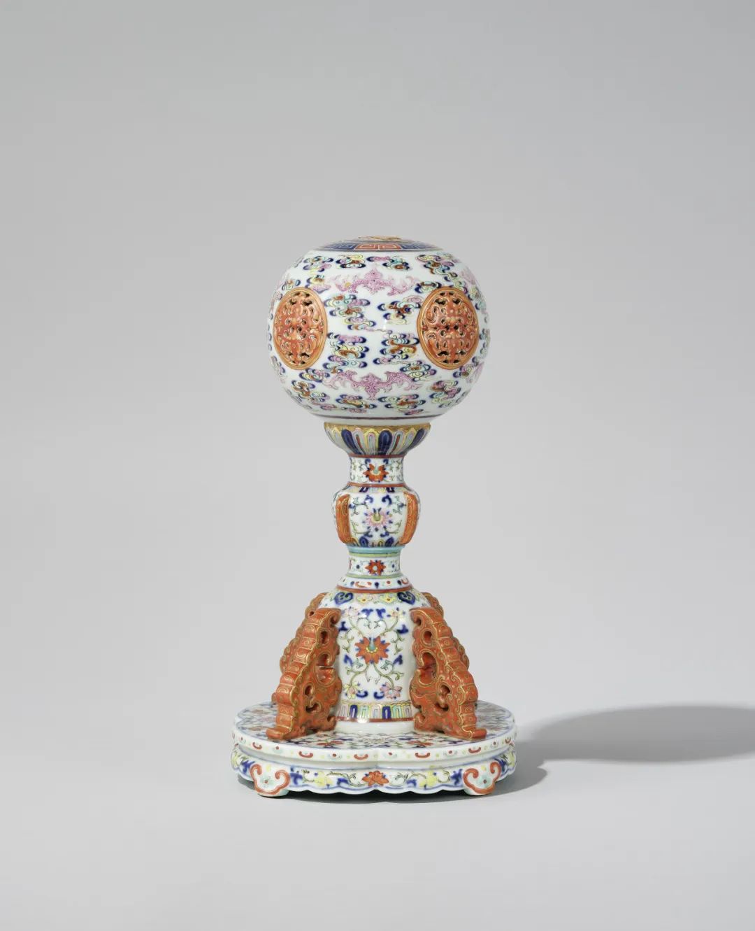 清乾隆 粉彩云蝠纹冠架 矾红