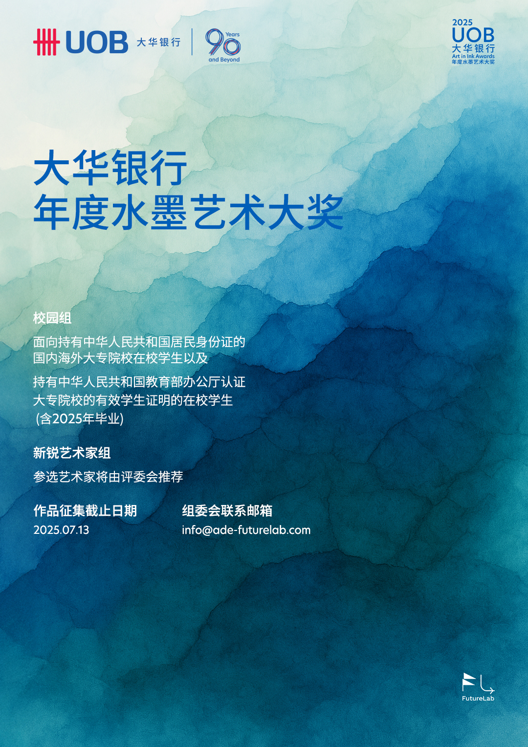 大华银行(中国)有限公司(以下简称“大华银行中国”)宣布,2025“大华银行年度水墨艺术大奖”正式开启招募。报名通道即日开放,截止日期至2025年7月13日,诚邀青年艺术家以水墨为媒,共绘艺术新篇章。