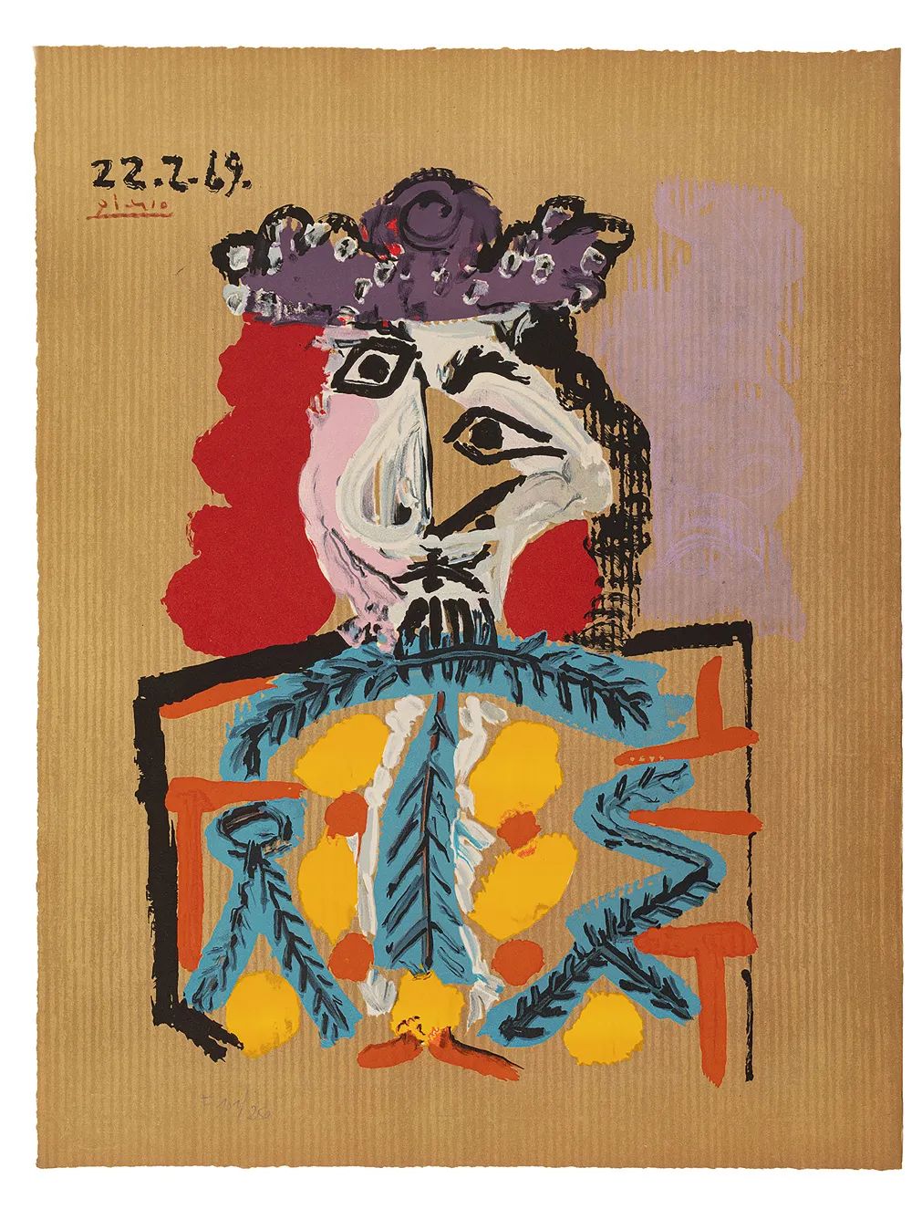 巴勃罗·毕加索 (Pablo Picasso), 《想象中的人物肖像 - 22.2.69》, 彩色蚀刻版画, 96.9 x 82 cm, 1969. 致谢简画廊