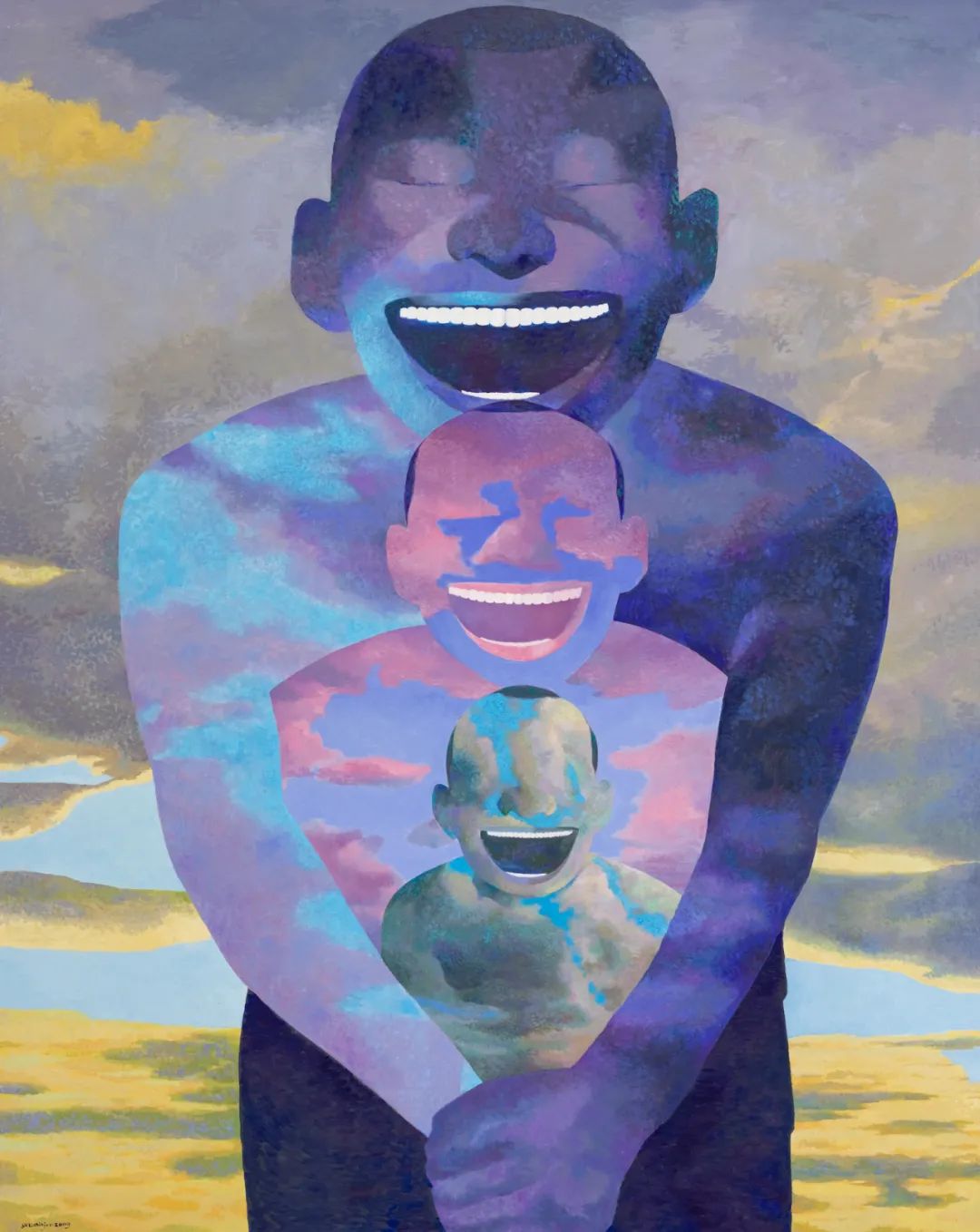 岳敏君, 《霞光》,布面油画, 200 × 250 cm, 2009. 致谢当代唐人艺术中心