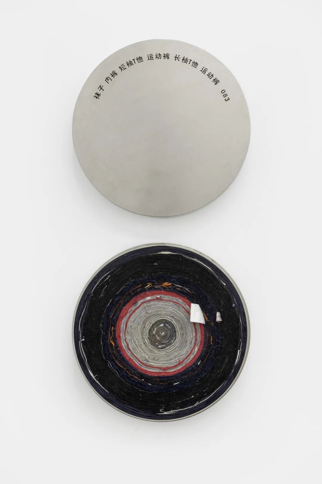 尹秀珍,《一句话 No. 083》,不锈钢,穿过的衣物,直径39.8 cm,2011. 致谢北京公社