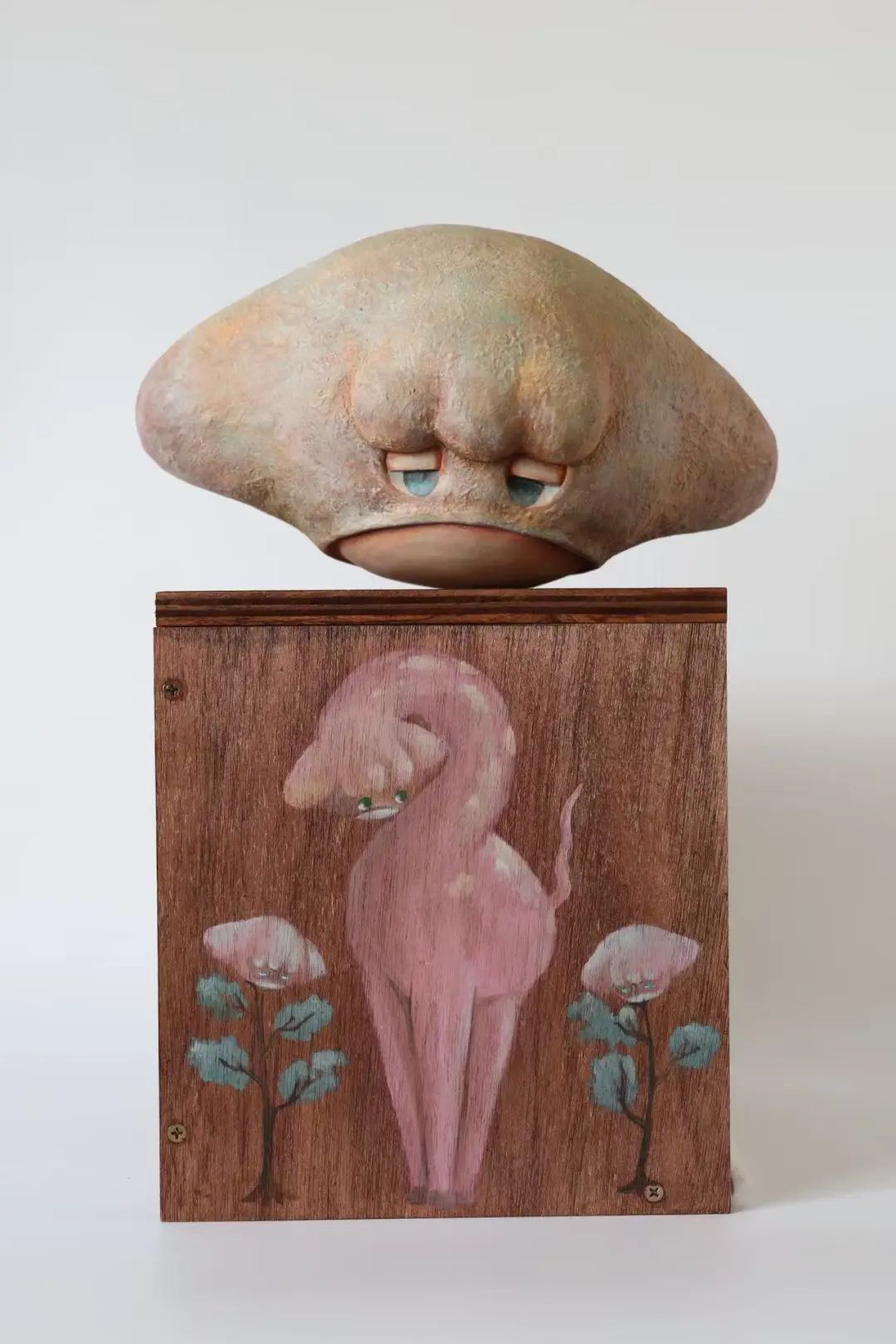 下:朱媛汝,《珍奇柜-头部》, 亚克力、玻璃纤维、木箱, 25.5 x 25.5 x 23 cm, 2025. 致谢秋刀鱼艺术中心