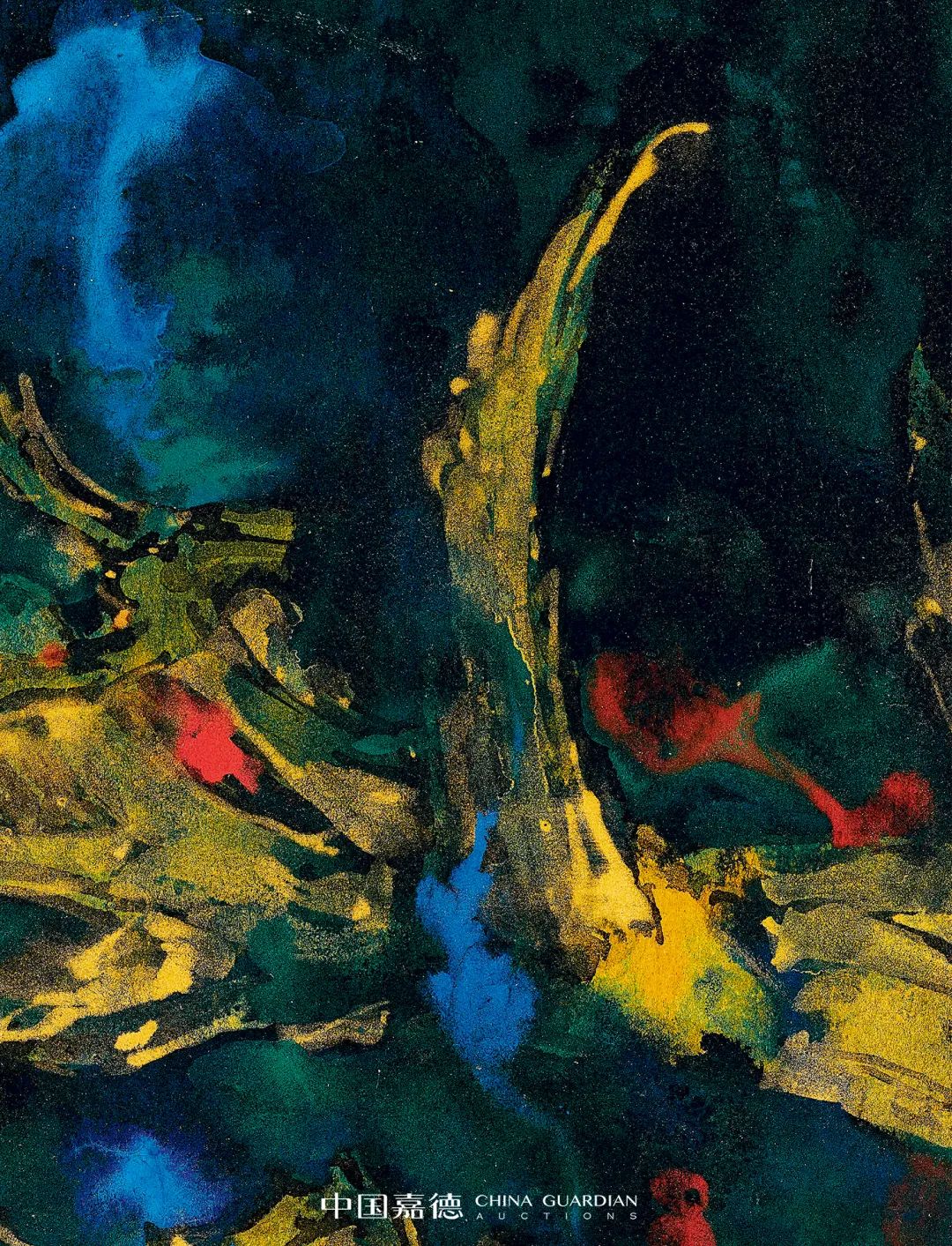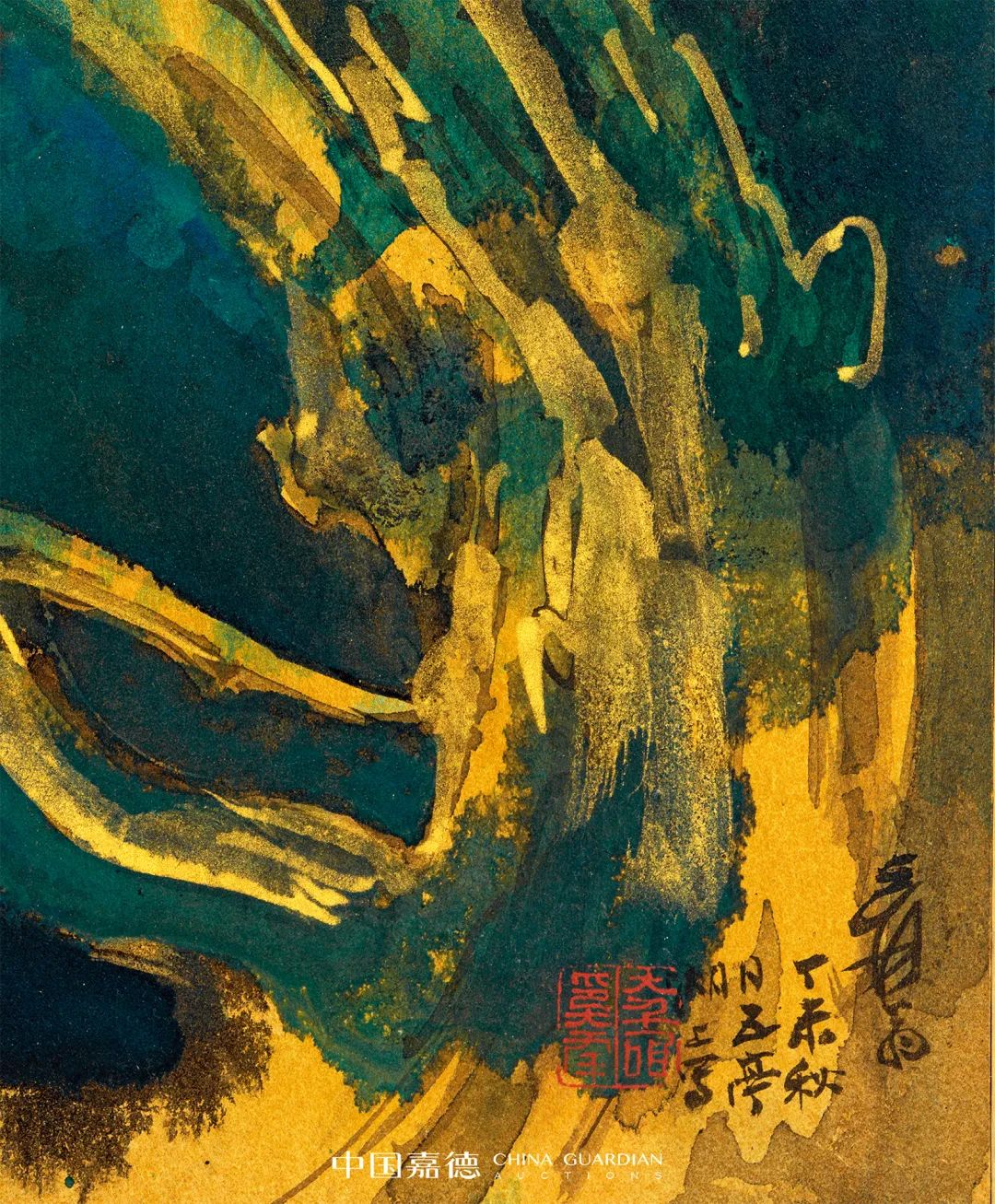 大千说:要有光!本季将呈现极为珍罕的金板泼彩巨制《日蚀》。此作为大千先生1966年于巴西圣保罗目睹一场天文奇观后,灵光闪烁心手相应奔涌磅礴而出,画面奇幻瑰丽,溢彩流光。自1969年在美国加州展览后,即一直秘藏家中,本季首度于公开市场曝光。