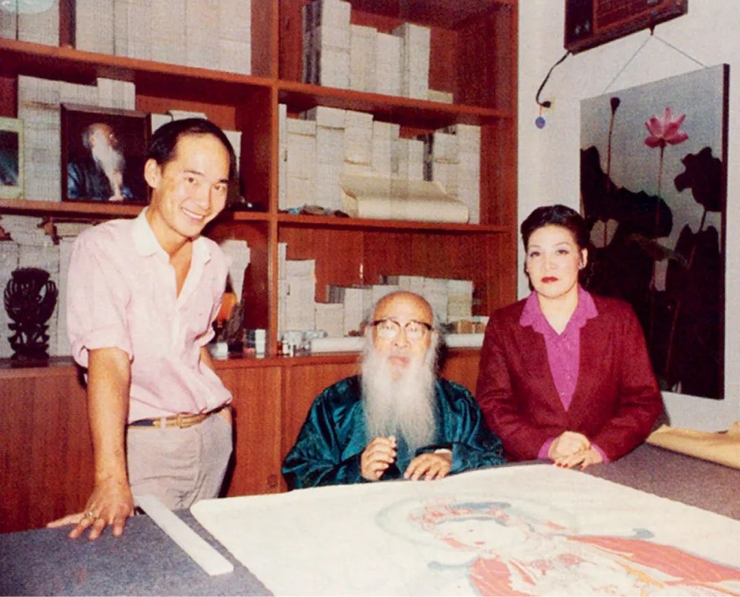 杨凡(左)和张大千先生及夫人徐雯波女士合影