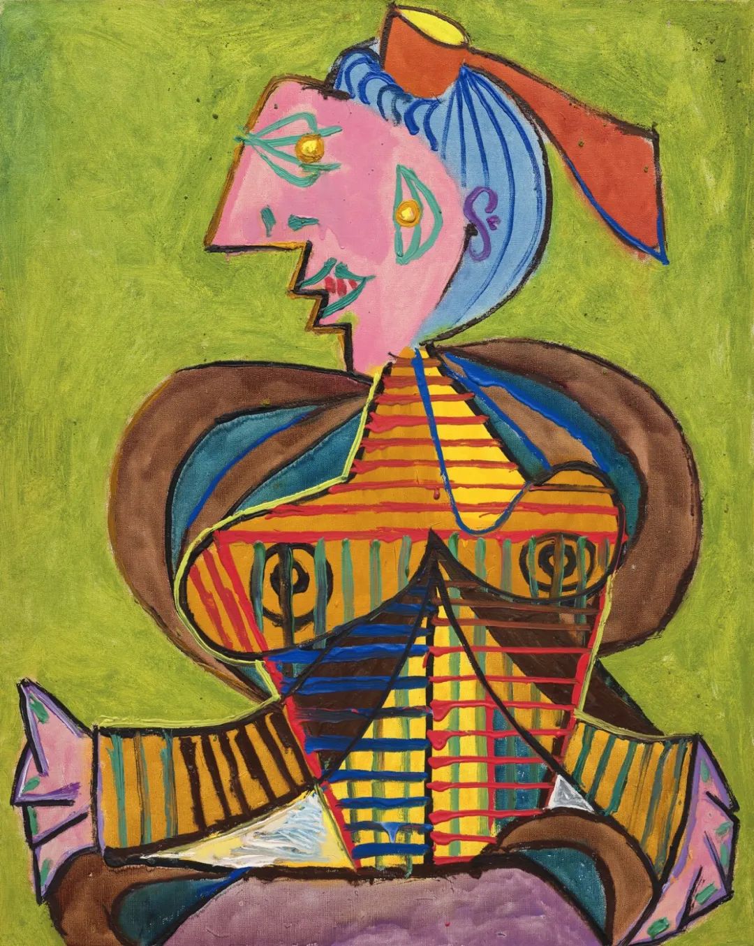 《绿色背景中戴着阿尔勒头饰的女子(李‧米勒)》