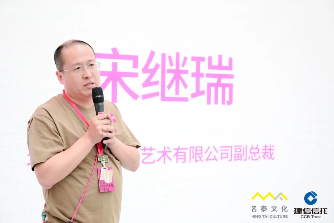 北京名泰文化艺术有限公司副总裁宋继瑞在发言中说道,青年艺术100从2011年到现在发生了很大的变化 ,其中的一个变化是参展艺术家类型的变化,架上绘画的参展艺术家从2011年最初的占比90%演变到最近几年的30%左右。如何让100青年艺术季呈现更丰富的艺术类型成为考虑的问题。基于此,我们和建信信托联合推出面向绘画艺术的建信信托艺术大奖。建信信托艺术大奖迄今参评的艺术家已经超过400位,入围的艺术家合计61位,获奖的艺术家合计12位,是100青年艺术季的重要内容,并感谢建信信托和各位评委、艺术家们的支持,希望建信信托艺术大奖和获奖艺术家在未来互相成就,共同见证青年艺术的发展。