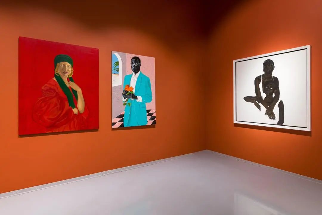 展览从多个维度出发,涵盖了观察非洲裔艺术家的方方面面。阿莫科·博阿福(Amoako Boafo)的肖像画,以其厚涂技法和鲜艳色彩闻名,展现黑人身份与时尚的融合。伊布拉希姆·埃尔-萨拉希(Ibrahim El-Salahi)的抽象具象作品,融合苏丹文化与现代主义。费斯·林戈尔德(Faith Ringgold)的叙事性绘画与拼布艺术,则是黑人民权运动与女性主义的融合。