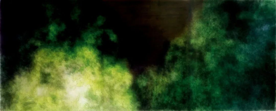 2016年创作的《树》延续了康海涛的“夜景绘画”,画面中,两簇树团以朦胧的形态浮现于夜色中,左侧的树丛泛着冷冽的荧光,右侧则逐渐隐入幽暗,自然在明灭之间吐纳着静谧的能量。康海涛以极薄的丙烯颜料层层罩染,使得画面既保留了水墨般的通透感,又通过叠加的笔触塑造出厚重的体积感,如同传统山水画中的“积墨”技法,在克制中积累出深邃的层次。