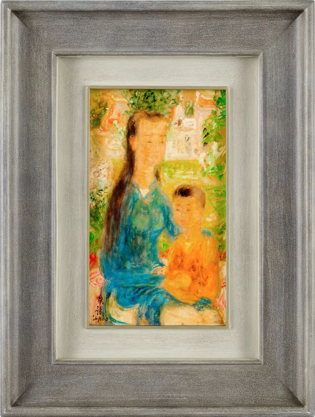 黎谱以油彩绢本重彩见长,除广为人知的植被花卉主题外,他也擅以温暖细腻的手法捕捉女性的情感,通过描绘东亚女性的含蓄温婉,在画布上建构美学意境。这幅《母与子》聚焦越南奥黛服饰的母性形象,艺术家以温润笔触解构传统母题,更展现出其对女性气质细致瑞娥的体察与礼赞,将日常而私密的场景定格为永恒。