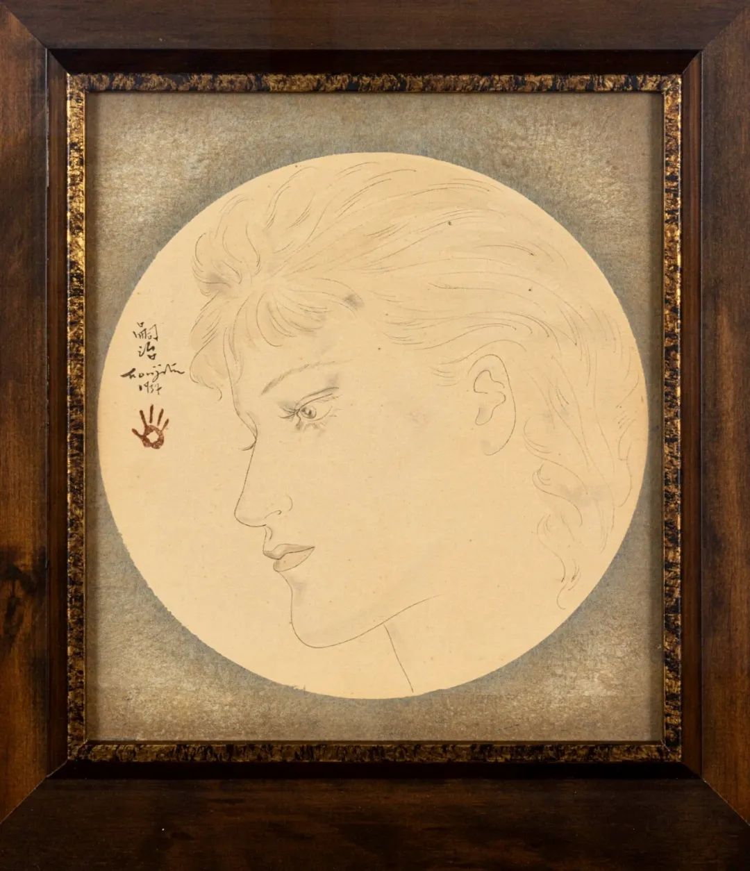 这幅《妇人像》用浮世绘般简略概括的线条,以寥寥几笔勾勒出女人侧脸轮廓,用以西方素描勾勒阴影,正是其艺术成功糅合东西方范式之体现。这也使他成为日法友好关系的象征人物,作品亦被巴黎卢浮宫博物馆、东京国立现代艺术博物馆及其他众多知名博物馆收藏。
