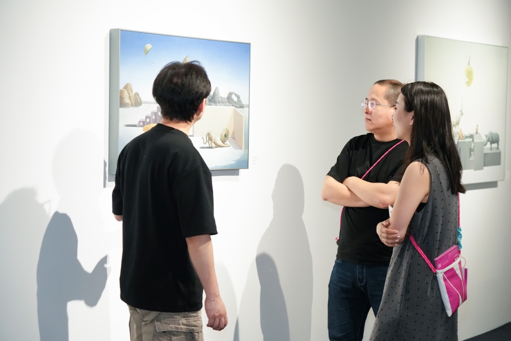 艺术家张永飞表示自己的作品均基于日常情感的触动,虚幻的空间、消减的颜色和收紧的轮廓皆是心境的真实体现,他在创作中强调绘画性的抽离与情感的倾尽投入。此外,张永飞表达了对家人陪伴支持的感恩,感谢各方的付出并期待大家持续关注其作品。