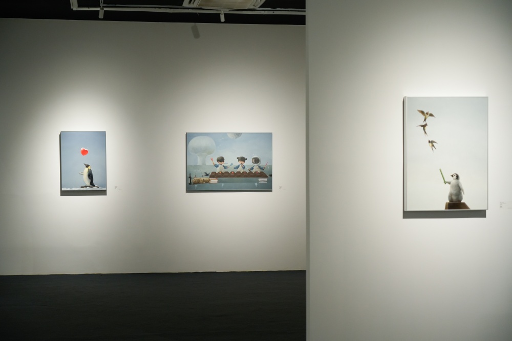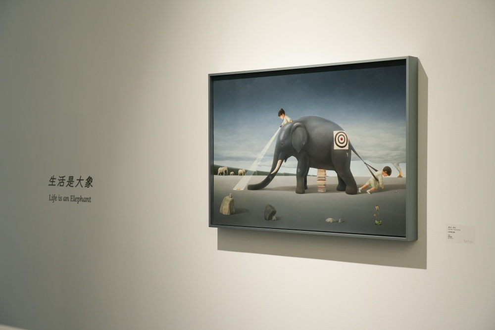 张永飞的作品还带有超现实的元素,他倾向于通过符号的转化来传达情感,以克制而内敛的方式,将内心深处的想法诉诸画布。这份情感蔓延至画布之外,流淌着对家人的温暖守护,对友人的真挚关怀以及对万物本质的深沉思索。稍显小巧的作品却展露出他在方寸间容纳天地和蓬勃生命力的真挚意愿。