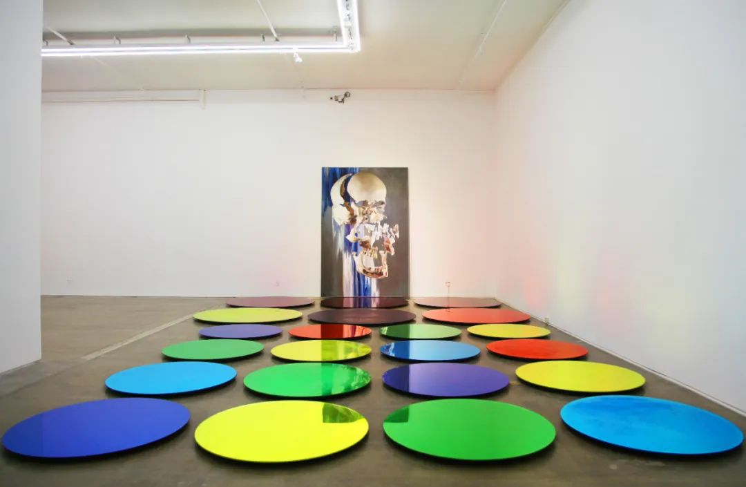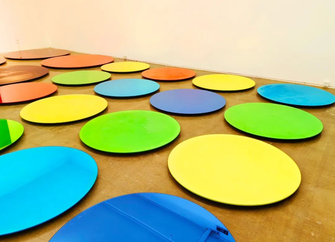 下:《五色宇宙》,凌健,镀膜玻璃,直径120cm x17,直径190cm x6,2011
