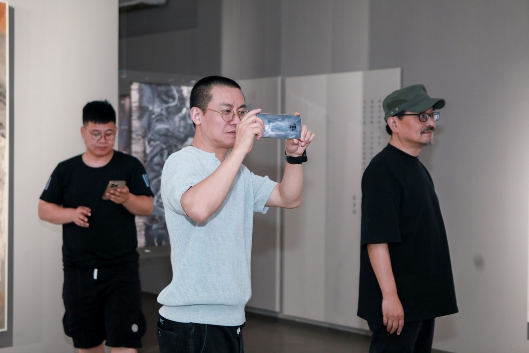 本次展览共计展出徐善循近年创作的绘画作品130余件,艺术家以独特的艺术语言和对 “形” 与 “象” 进行分析与融和,线条挣脱“物、象”的束缚,生命的原始力量在水墨氤氲中觉醒,将“大象无形” 的东方哲思化作 “循形” 的艺术实践,为观众带来全新的视觉体验与心灵触动。展览当日还举办了徐善循作品艺术研讨会,与会艺术评论家围绕徐善循作品中的东方哲学内核、当代艺术语言以及水墨与抽象的未来等议题展开了深入对话,探讨徐善循在当代艺术语境下的探索与突破。徐善循的绘画一方面依循外象并遵循形式结构原理,另一方面则归于个人图式和符号——是具象的个人情感图景,也是抽象化的私人结界景观。抽象表现主义艺术家罗斯科坚定地认为艺术是作为与观众交流的桥梁,徐善循的绘画也是其内心的独白,之所以说是独白,是因为艺术家以几近偏执却了无羁绊的自语构建了内心的洪荒结界。当代中国绘画发展出了众多支系,徐善循的绘画在高度景观化的大文化语境中像是一种野性的呐喊,而这种语言的探索和实践正是艺术走向不同向度的能指基础。