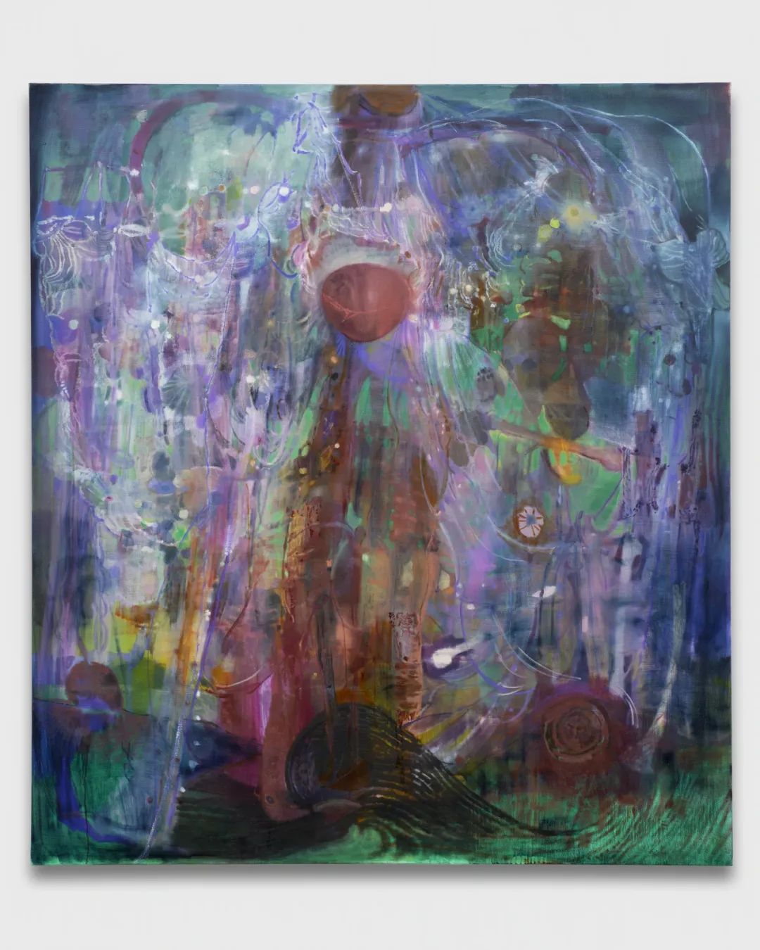 在整个展览的科幻叙事和变幻莫测的热敏表面之下,是重重叠叠的灵性符号和神话象征,既指向灵魂,也指向星空。阿里奥受各类秘传体系启发,如脉轮排列、天使等级制度、北美原住民民间传说、古代宇宙论等,暗示治愈、转变以及与未知世界的接触的相互关联。