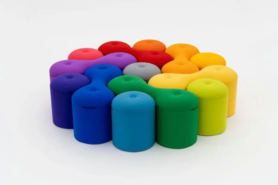 乔希·斯博林借鉴了20世纪60年代和70年代的极简主义绘画语言,其作品色彩通常是饱和的,甚至不协调的。无论是大型组合墙面装置,或是单个形状,斯博林仅通过颜色和轮廓本身,就能够为这些静态作品都注入活力感。
