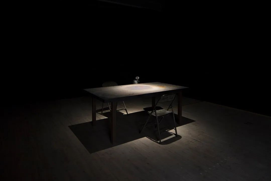 2015,钢制桌子和椅子、电磁炉、水,174.5 x 190 x 100 cm