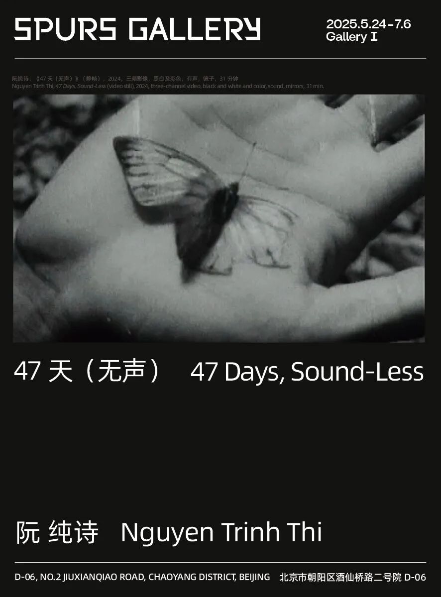 展览《47天(无声)》名称与越南艺术家阮纯诗(Nguyen Trinh Thi)的综合媒介影像装置作品《47天(无声)》(47 Days, Sound-Less,2024年)同名。这部作品由新加坡美术馆、哈恩內夫肯基金会、森美术馆及香港M+共同支持的2021年流动影像委约计划赞助制作,通过声音、影像与空间的交织,反思自身与自然、历史及影像叙事的关系,同时对人类感知的固有认知展开挑战。对观众来说,这将是在北京艺术周期间的一场特别体验。