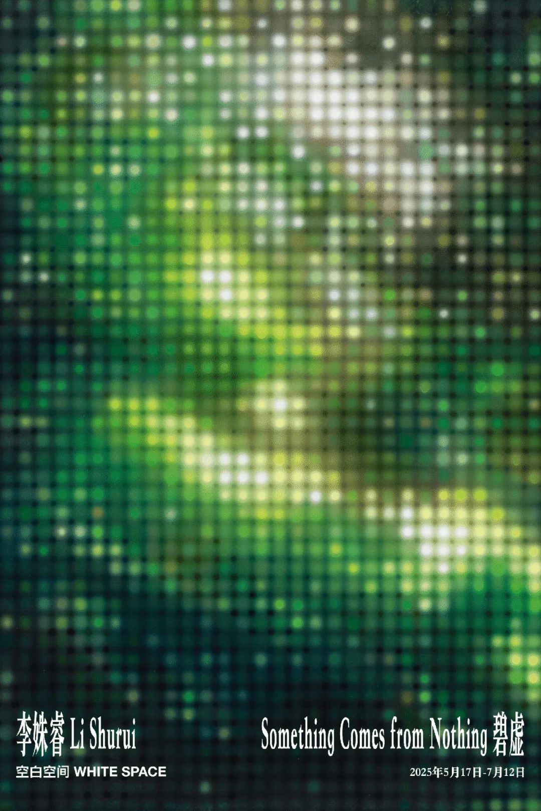 尽管常被指认为抽象画家,李姝睿却质疑"抽象"与"具象"的二分法。展览的深层逻辑源于李姝睿对物理学与佛学的兴趣与交叉探索。弦理论中粒子即振动的发现与《心经》"五蕴皆空"的哲思形成奇妙互文:若万物本质皆为能量振动,则"抽象与具象的界限无非是人类画地为牢"。这一认知也直接体现在其创作方法论中----如果说早期作品《深白》(2017)是以点阵模拟光的理性秩序,那么《夜涌》(2025)则在色块交融间引入"失控的轻盈":在画面的结构中,点与线虽仍然构成了李姝睿标志性的视觉,但于远处遥望,画面中的水汽挣脱重力升向高空,汇聚为星辰;于切近处端详,流淌的水体又在坠落中与光共舞。这种"有序中的无序"既是艺术家对现时生命状态的回应,亦是对存在本质的思考:"我们皆是虚空中振动的能量,聚合为'我',又消散于无。"