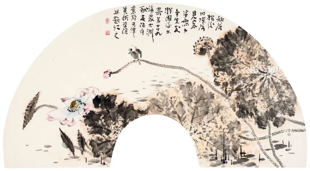【题识】秋荷独后时,摇落见风姿。无力争先发,非因后出奇。弟七十九旃蒙大渊献,春阳写意于天津美术学院并题记之。