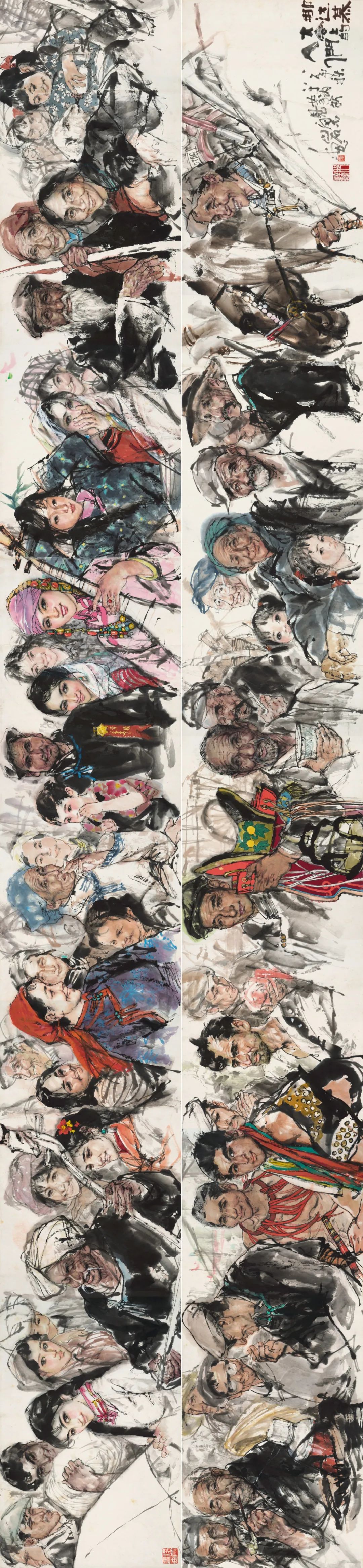 【题识】那达慕大会上的人们。八一年秋,于内蒙所见,梁岩画。