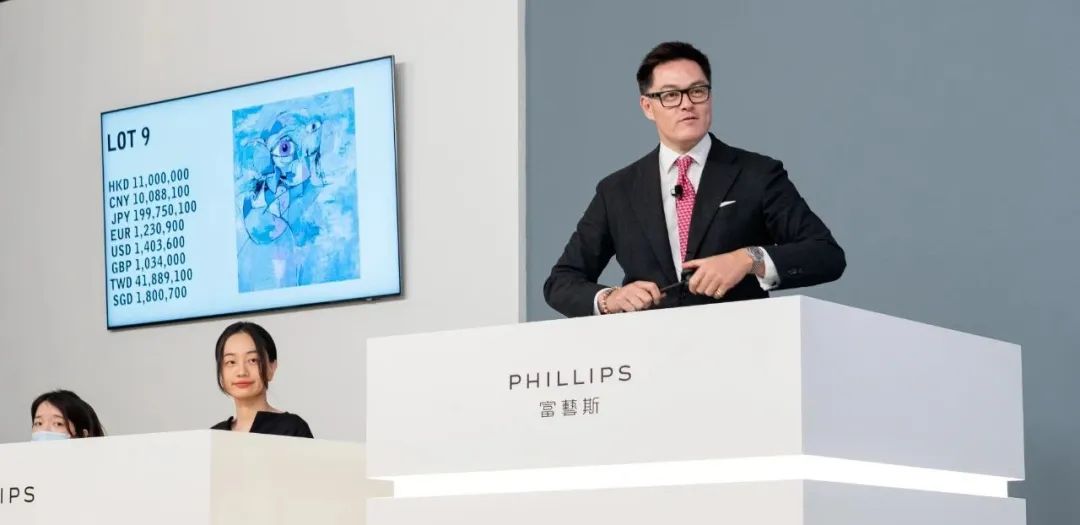 领衔拍品为乔治·康多的《F蓝调》,此作从未现身拍场、出自艺术家著名的“蓝调绘画”系列,以1,376万港元成交。