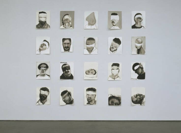 在 2002 年创作的《蒙眼者》(Blindfolded)系列中,杜玛斯以 20 幅素描描绘一群被蒙眼的巴勒斯坦男子,展现无助、受困与被剥夺视线的处境。同年,她还创作了〈死去的女孩〉(Dead Girl),画面中是一名被枪杀的巴勒斯坦女孩,血迹斑斑的头部无力垂下,震撼而悲痛。