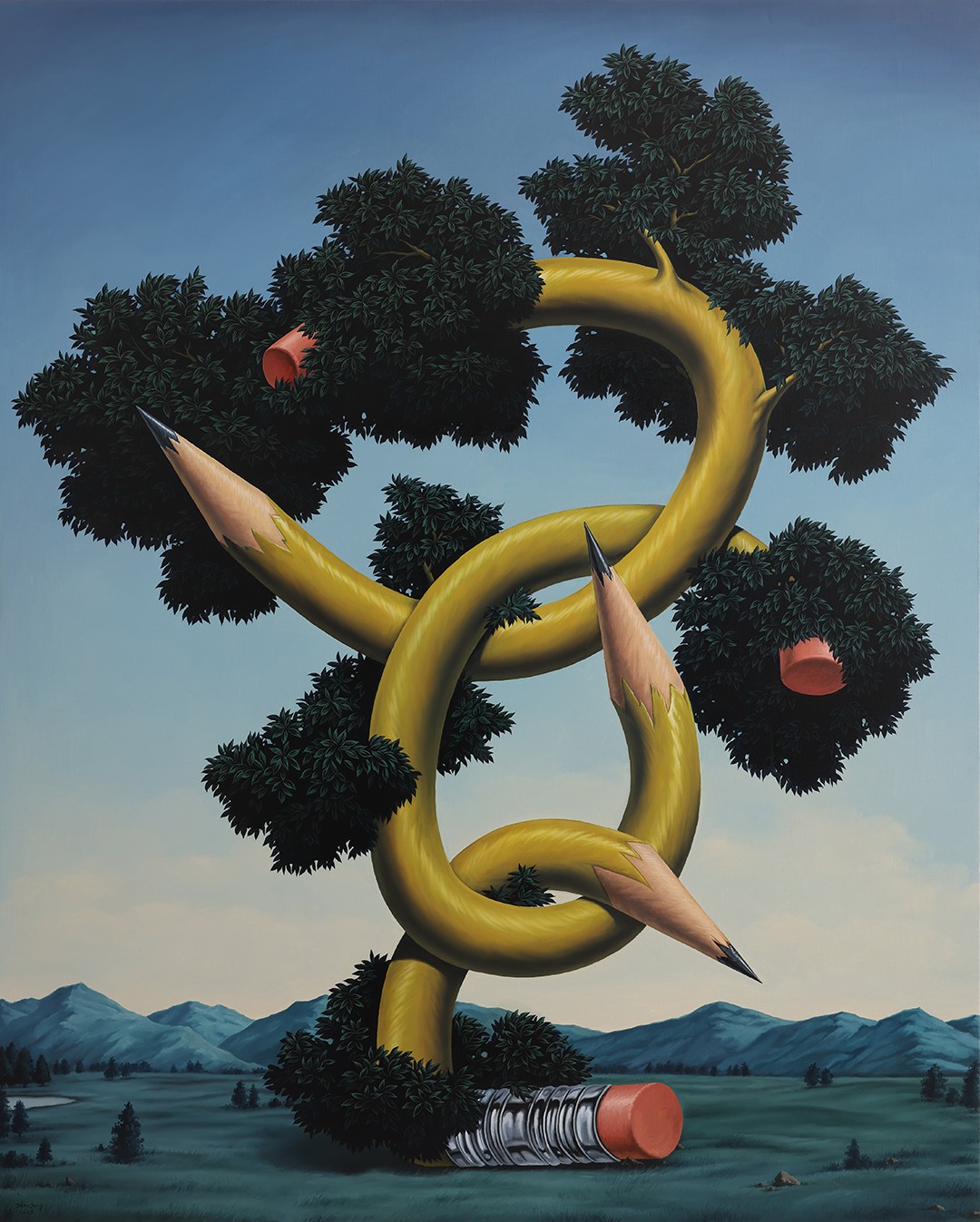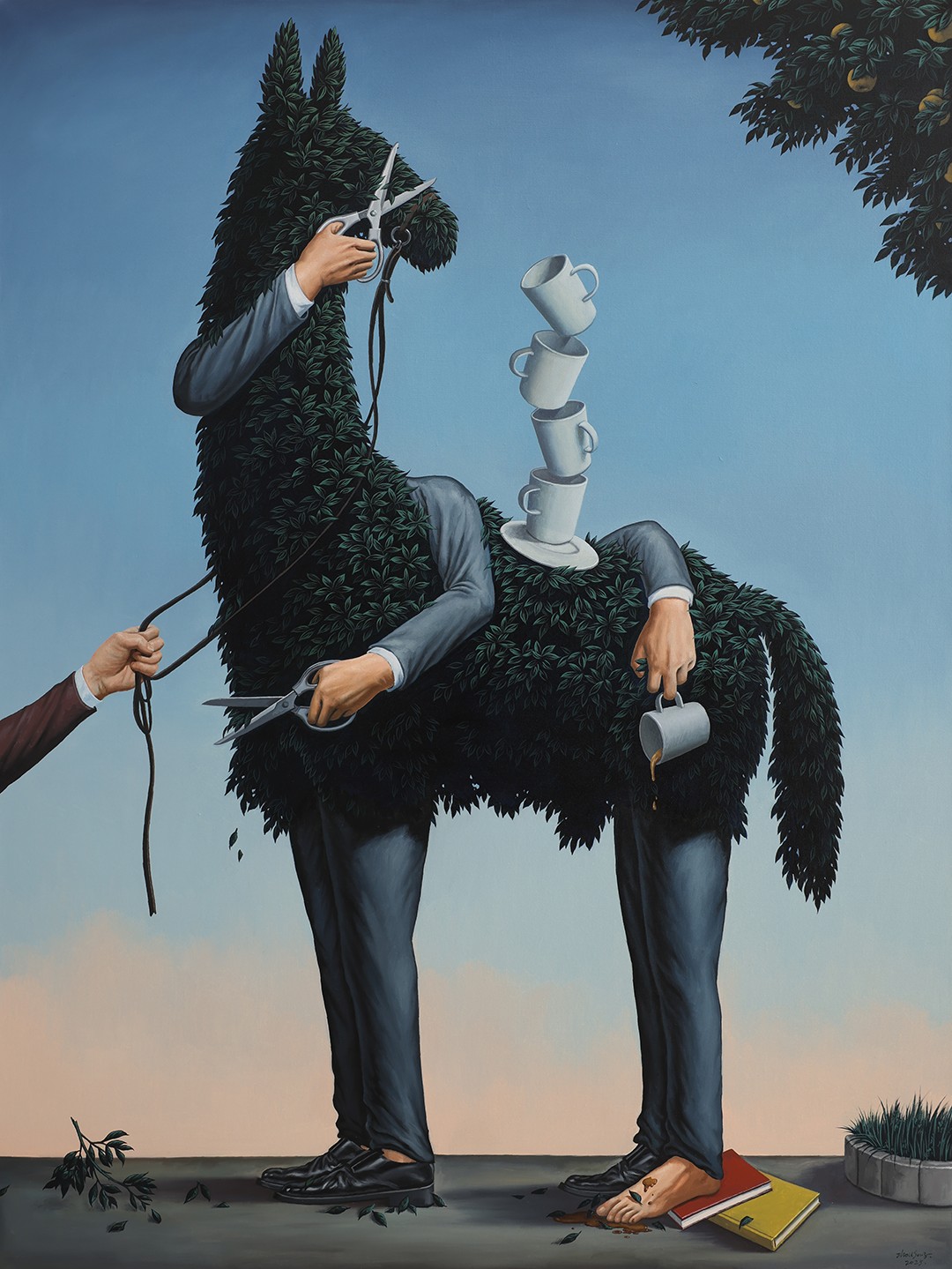 周松,中国当代艺术家,现工作生活于中国。其创作跨越具象与观念边界,以绘画语言探讨自然、身体与社会秩序之间的结构性关系,融合写实技法与符号重构,逐渐形成具有辨识度的图像风格。近年来,他聚焦于“超自然”概念,借助东方哲学视角回应技术时代中人类精神状态的复杂处境,通过“树”“人”“日常”等元素的交错与重组,构建出一种悖论式的图景,引发观众对当代生存经验的思考。