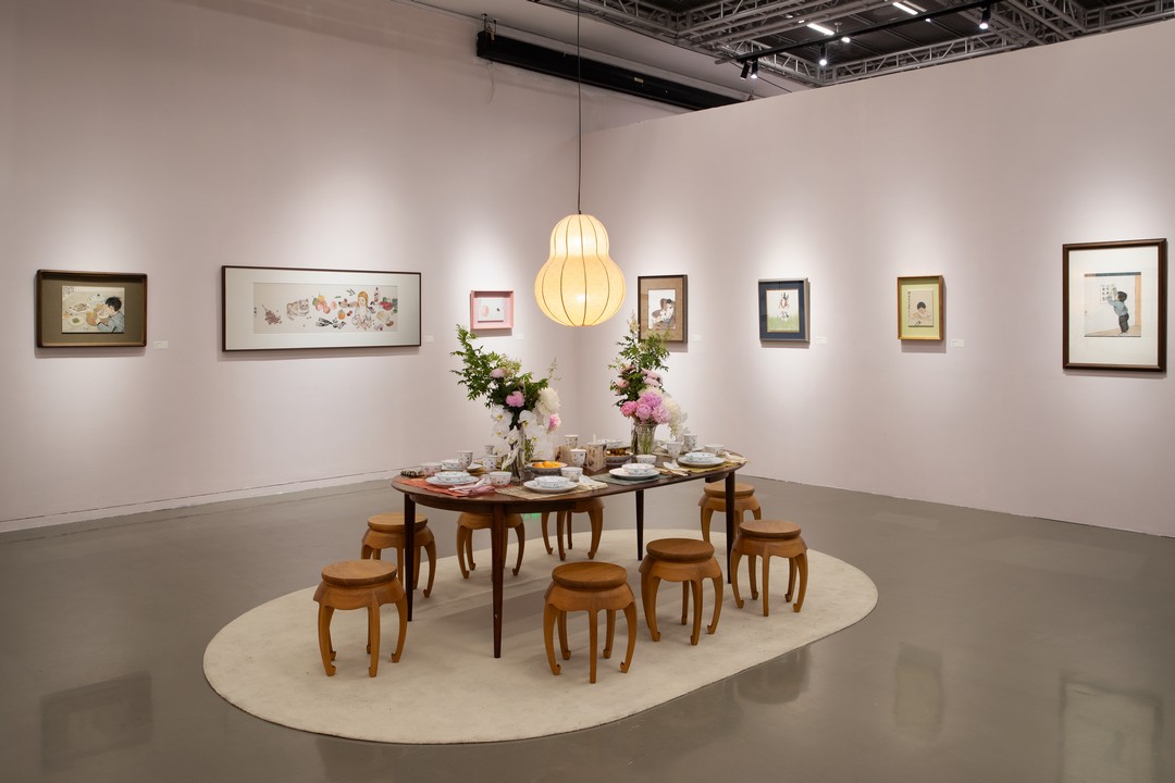 这次“自有我在”主题展览,就是林曦的人生缩影。展览里,画家、教育家、生活家、设计者的身份完美融合,每一幅作品都是她人生的印记。她把这些身份统一在自己的美学和生活哲学里,画里有生活的烟火气,更有诗意的浪漫。她坚持描绘可爱的孩子、喜欢的事物,为我们勾勒出一个圆满自足、充满童趣的小世界。