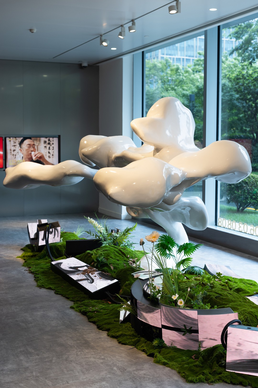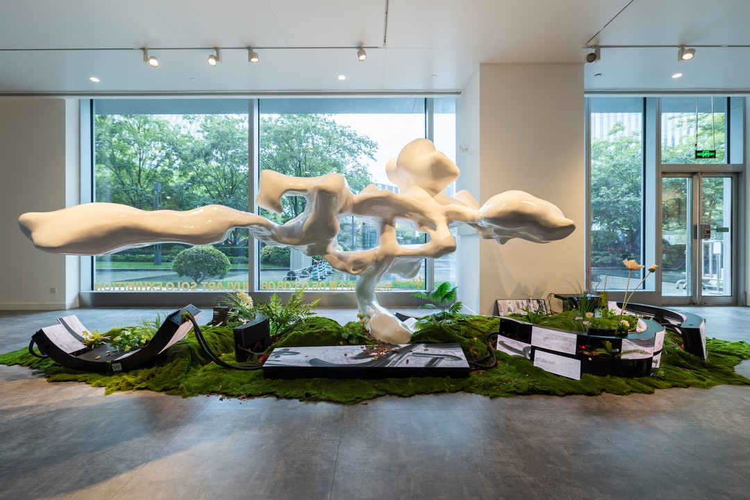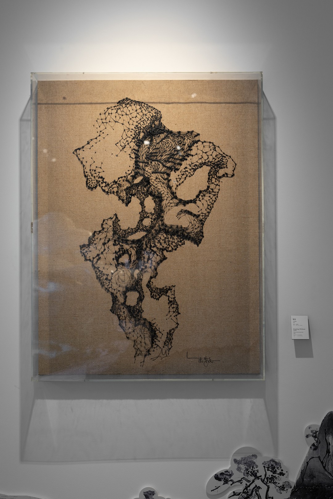 值得一题的是,艺术家特别为本次展览特别定制的装置作品《如一》。作品以松树为象征,将其枝干线条与“如一”二字的书法笔画融合,塑造出一组兼具东方意蕴与情感温度的雕塑结构。“一”不仅是艺术家姓名中的字符,更象征其长期创作中对于“初心”的执着坚持。《如一》也呼应了大华银行始终秉持的文化包容与精神坚守,通过支持当代水墨艺术的长期发展和扶持新一代艺术人才,推动其在当代语境下的创新表达。