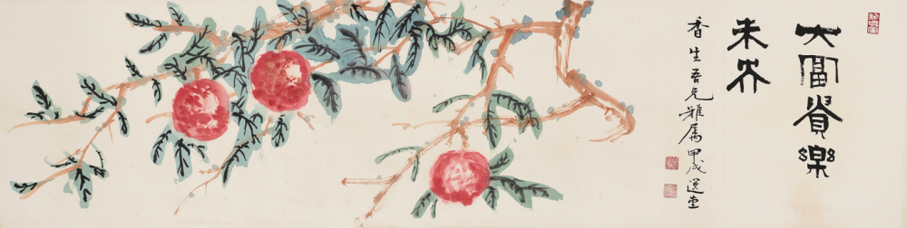 款识:大富贵乐未央。香山吾兄雅属。甲戌(1994年作),选堂。