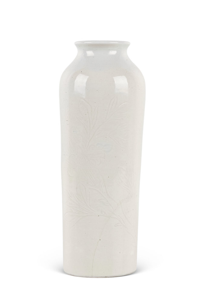 明末清初 德化窑白釉暗刻花纹筒瓶