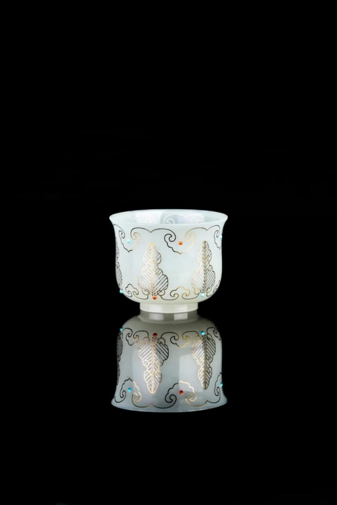 相伯居 金玉蕉叶金镶玉杯