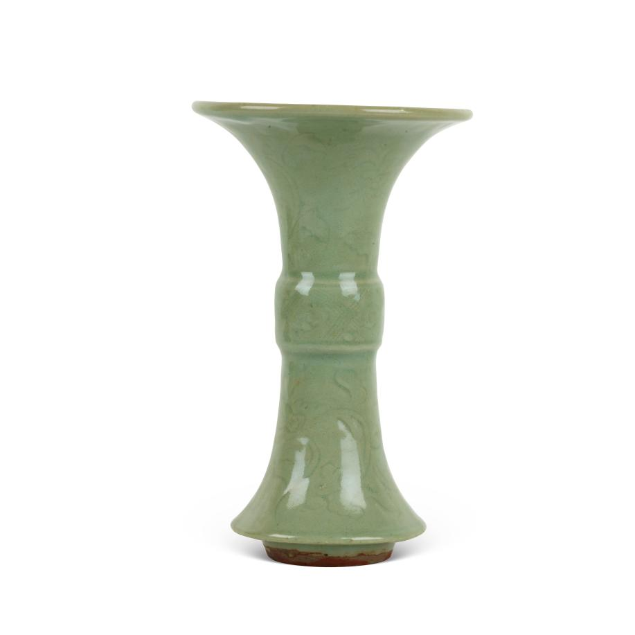 1.香港佳士得2018年10月拍卖会Lot38, 晚明;清初 龙泉窑青釉花觚,成交价RMB 38,100