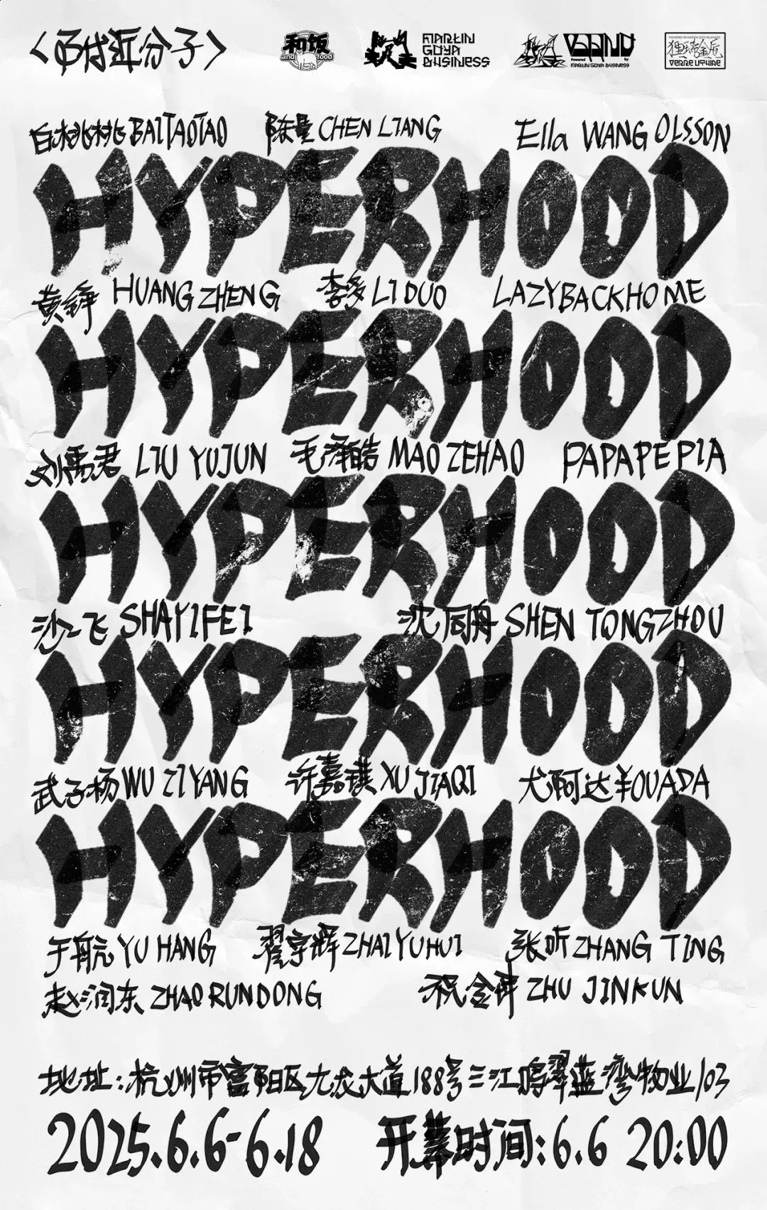 “附近分子”是由马丁·戈雅生意制造的词汇,用来形容在附近隐藏的一些超频道邻居。展览展出居住于杭州转塘、富阳及附近地区的19位艺术家,他们以非传统媒介塑造和架构着自我世界,其中既有生于千禧年前后的Z世代硅基少年,也有持续以独特面貌持续探索的隐世精灵。