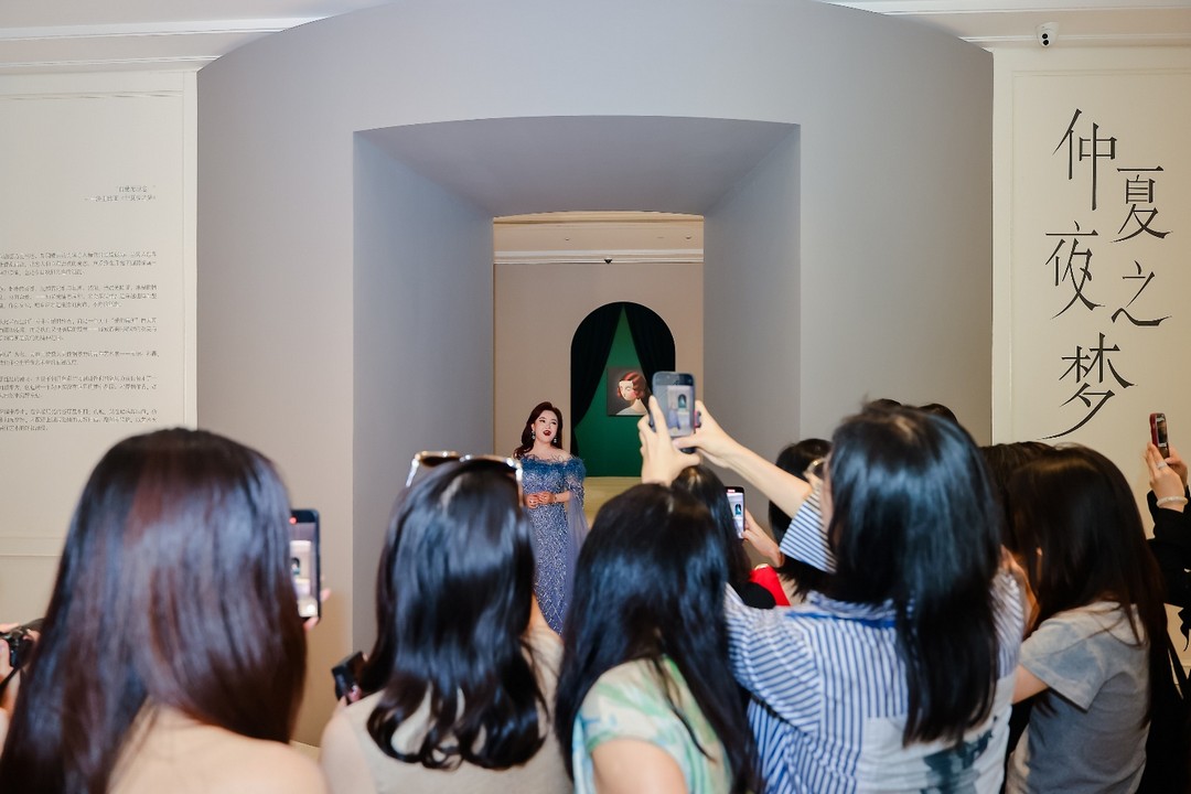 展览开幕正当时,中央音乐学院教师,女高音歌唱家武赫的高亢歌声如同月光下的誓言,回荡角落,成为展览的声场精神内核。她那动人的歌声,带领观众走入了一场梦境般的爱情仪式。