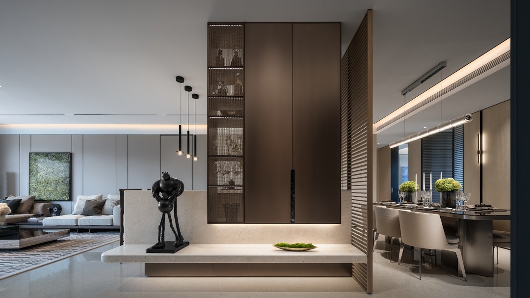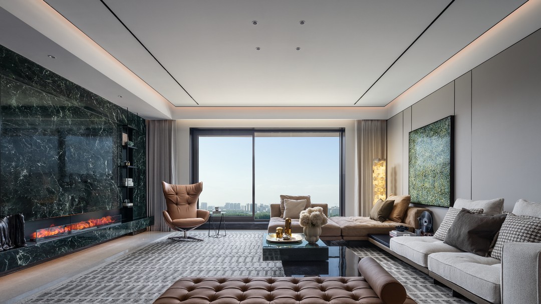 以及此次实楼开放的艺术焕新空间,演绎大地艺术美学的建面约215㎡诗意空间,将大地的色彩与纹理巧妙融入空间设计,让每一寸空间都散发着温暖而质朴的高级感;以宁静的奢华为设计语言的建面约252㎡奢雅空间,绿、金与米白交织,奢石、皮革与金属碰撞,生活的层次感油然而生;现代法白设计的建面约261㎡空间,直线的秩序美感,法式雕塑元素,复古典雅;乃至车库及公区,融创壹號院都大量应用格扇美学与对称美学,让归家的每一步都是艺术的巡礼与交响。