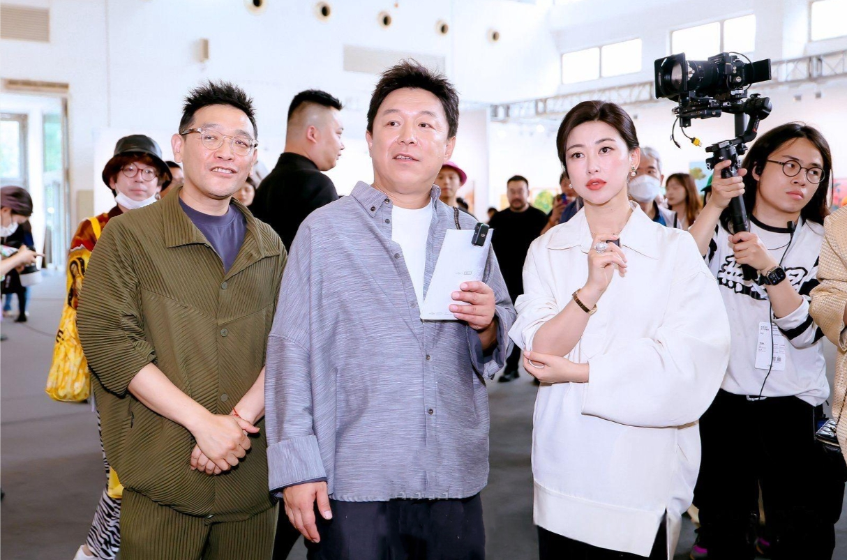 贾伟在北京当代艺博会现场,著名演员黄渤、朱珠亲临现场探展