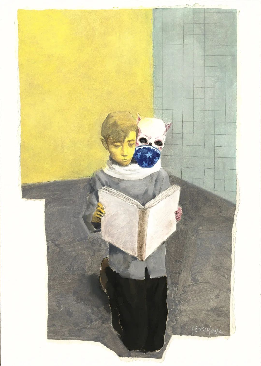 张晓刚,作品《蜉蝣日记:2020年9月4日-阅读者2号》的草图 2020年 纸本水彩