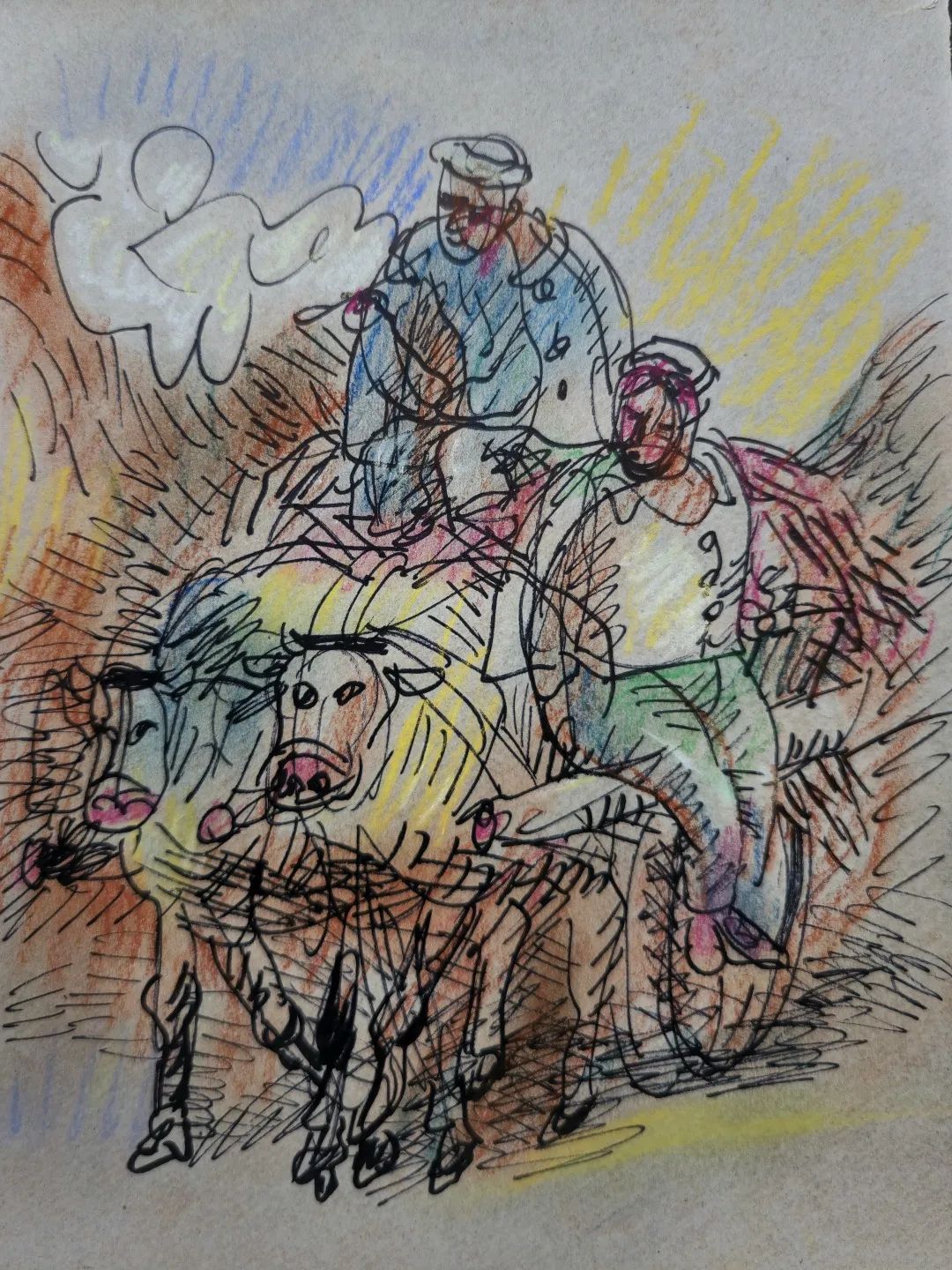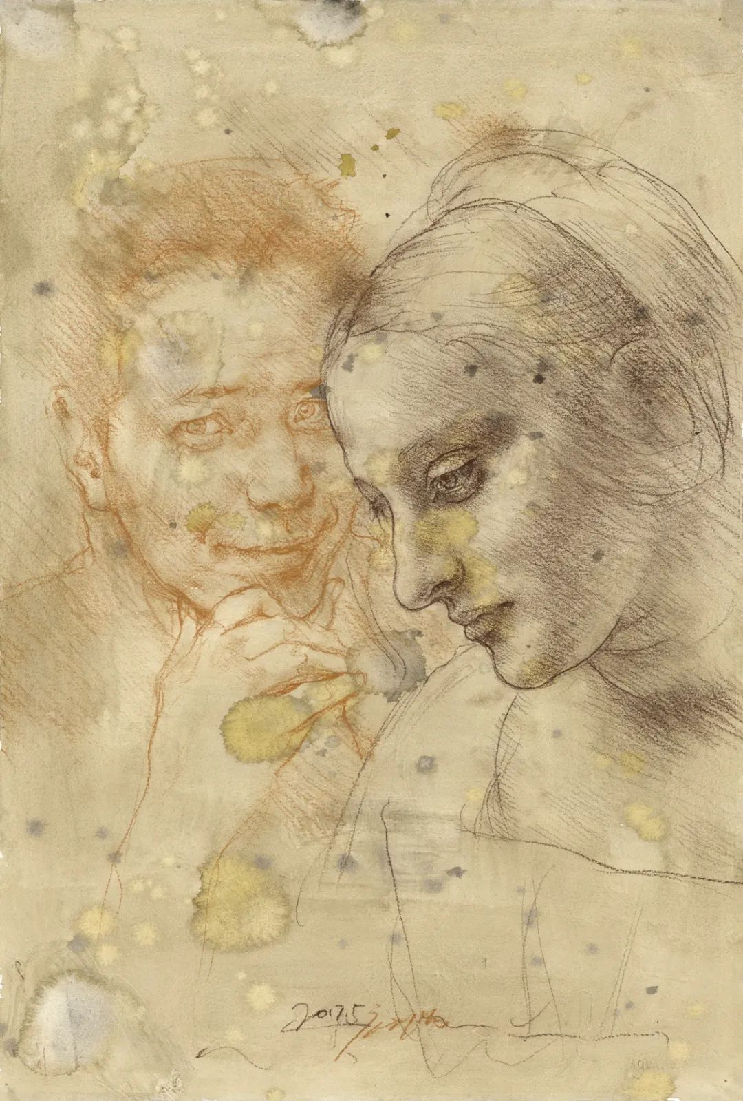 罗中立,故乡组画系列草稿,纸面,18×24cm×2 图©️罗中立