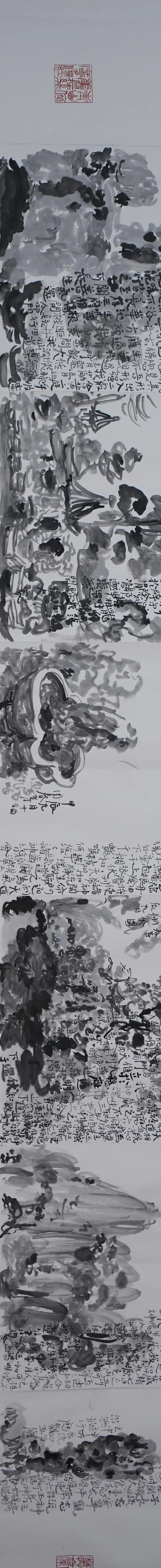周春芽,《园林随笔》(长折页) 2024年 纸上水墨 28×480cm