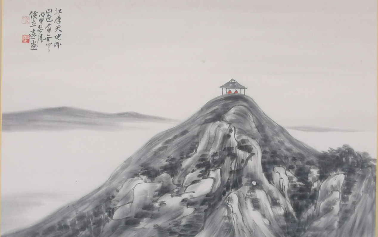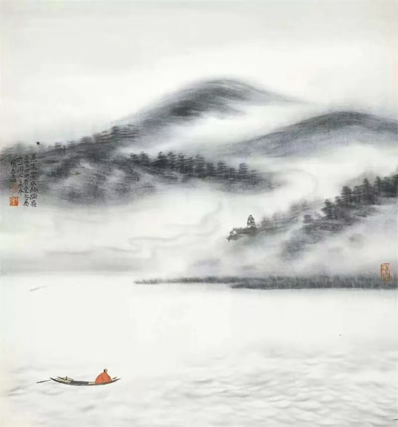 侯立远艺术的精魂在于禅意与文心的交融,视绘画为自我心灵之写照,主张“去具象之山水,化古法,融当代……随心性之所至”。其画中常见孤寺空亭、月照千峰,皆是禅宗“净极光通达,寂照含虚空〞境界的视觉隐喻。他常闭关山林,看云,听雨听风的修行,恰是禅宗直观本心的实践,使画面在至简至空处迸发直指人心的精神力量。